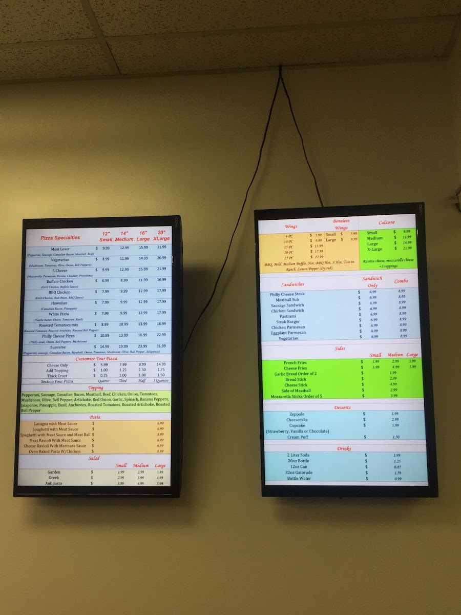 The menu doesn't stop at pizza; indulge in their mouthwatering chicken wings, available in crispy or boneless styles, served with your favorite sauce. If you have a sweet tooth, the dessert selection will charm you. Try the rich Cheesecake, delightful Creampuffs, and the classic Tiramisu that perfectly marries coffee and cream.